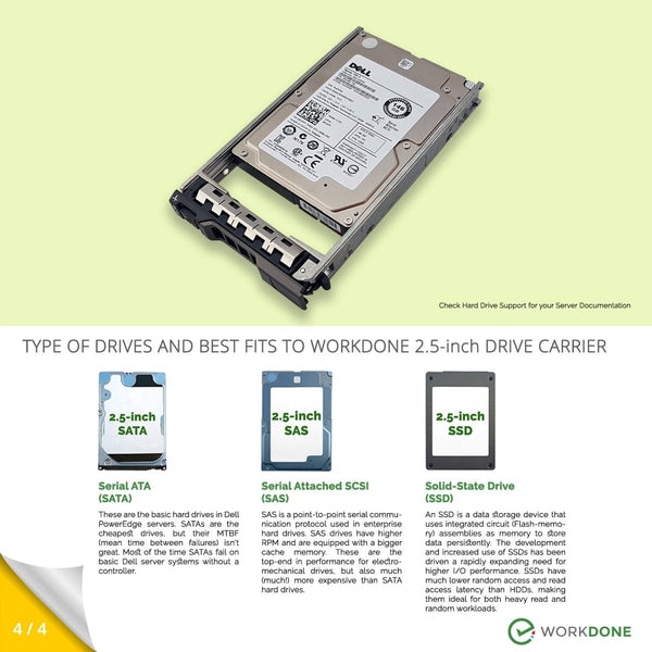 4 - PACK 2.5" Hard Drive Caddy - Dell Poweredge 0G176J Compatible - WORKDONE.EUROPE