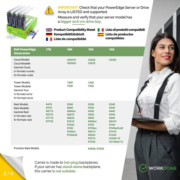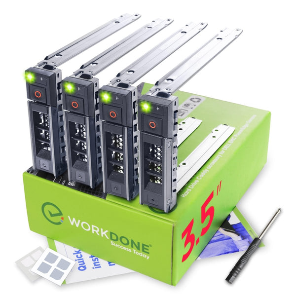 The professional 4-pack for serious deployments. Fully compatible with original Dell part numbers WH5D2, 0Y796F, 0X7K8W. Features exclusive WORKDONE Bright LED technology for superior drive monitoring across your RAID configurations. This Dell drive sled is a professional Dell drive tray with Dell hard drive caddy and Dell hard drive tray compatibility, featuring Dell HDD caddy design with Dell hot-swap capability for your Dell server caddy infrastructure.