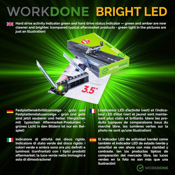 Experience WORKDONE quality with a single unit. Fully compatible with original Dell part numbers WH5D2, 0Y796F, 0X7K8W. Features exclusive WORKDONE Bright LED technology so you can see the superior quality difference before committing to larger purchases. This 3.5 caddy is a professional 3.5 drive caddy with Dell 3.5 caddy and Dell 3.5 drive caddy compatibility, featuring a reliable 3.5 tray and caddy 3.5 design for your Dell 3.5 infrastructure.